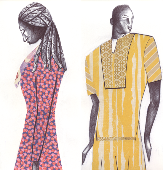 Have been working with collage lately, incorporating it into the paintings. Last month I started the ink pen drawing on the left and added collage. Praise God, was so pleased with the results have started a series of small pieces entitled “African Attire” using ethnic inspired patterns. The second piece in the series is on the right.