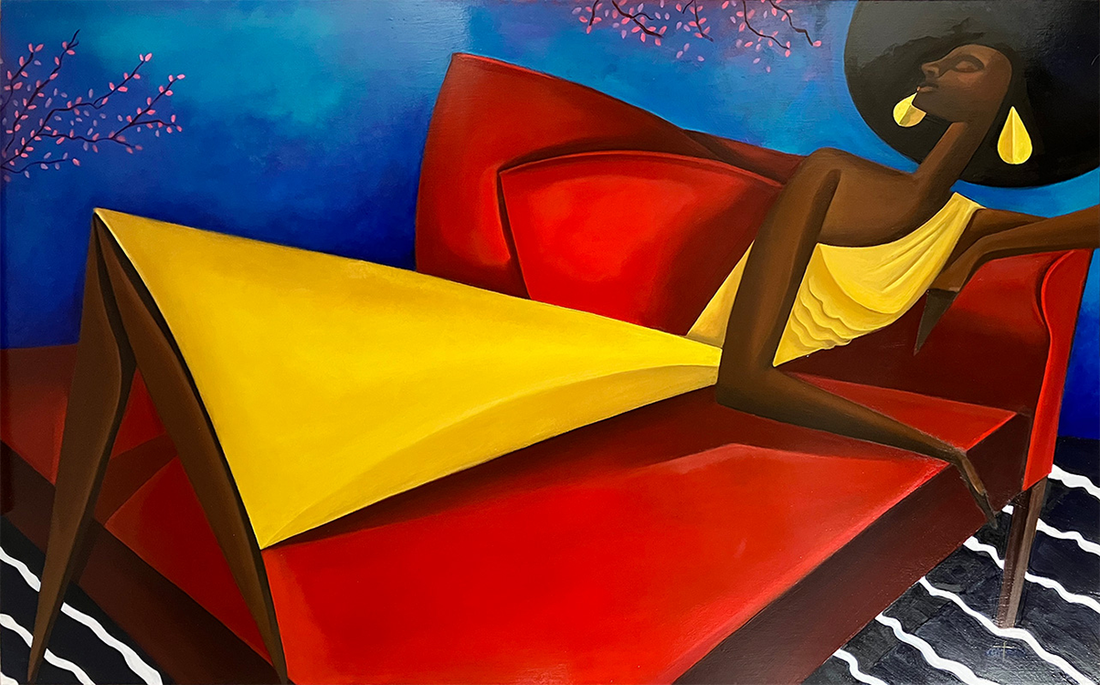 Afro Nouveau © 2026 | 36 h x 60 w in | Oils on Masonite | Inquire - E & S Gallery