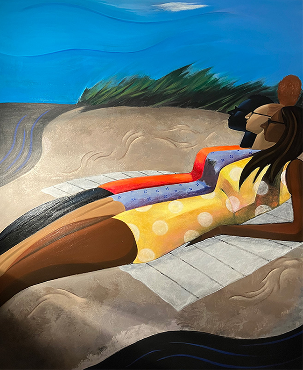 Inkwell Beach Life © 2026 | 60 h x 48 w in | Acrylic, Oils on Masonite | E & S Gallery