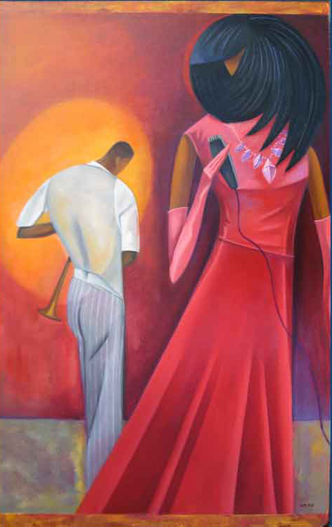 Solo & Trumpet © 2014 | 36 1/2 h x 24 w in | Alkyds on Masonite Masonite