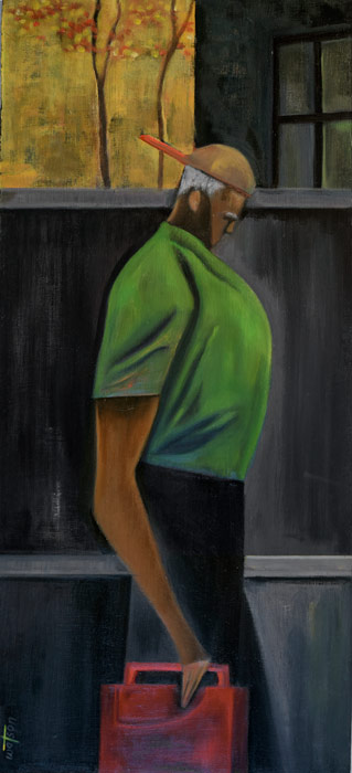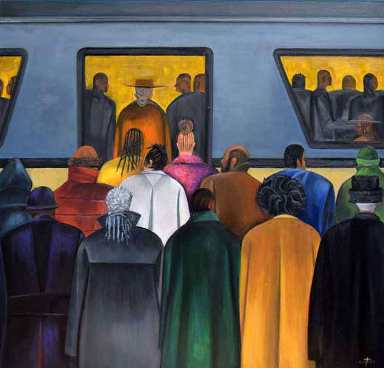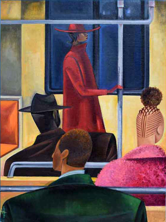 To Work - By Bus © 2016 | 23 1/2 h x 25 w in | Alkyds on Masonite