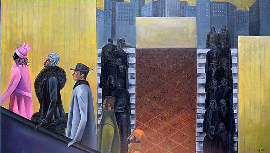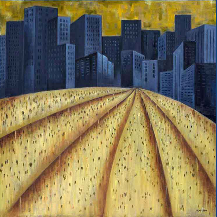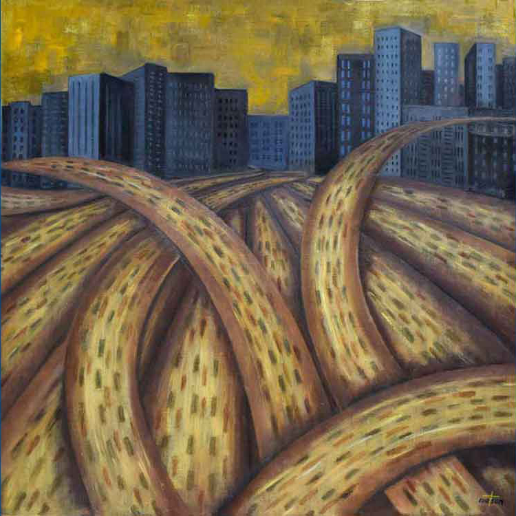 To Work - To the City © 2016 | 24 h x 24 1/8 w in | Alkyds on Masonite